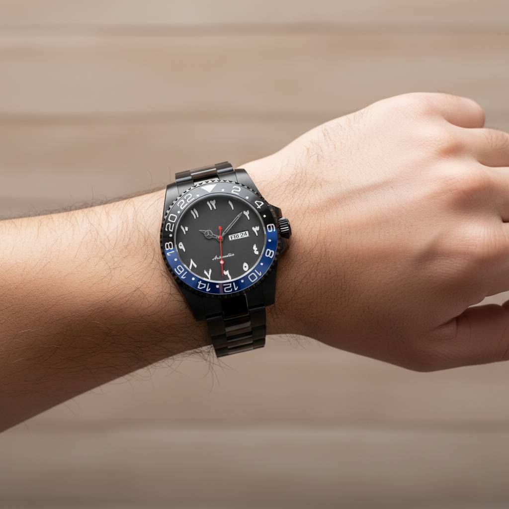 A fusion of contemporary design and timeless culture, this watch is more than a timekeeper—it is wearable art. Celebrate the beauty of Arabic script with a sophisticated, eye-catching accessory.