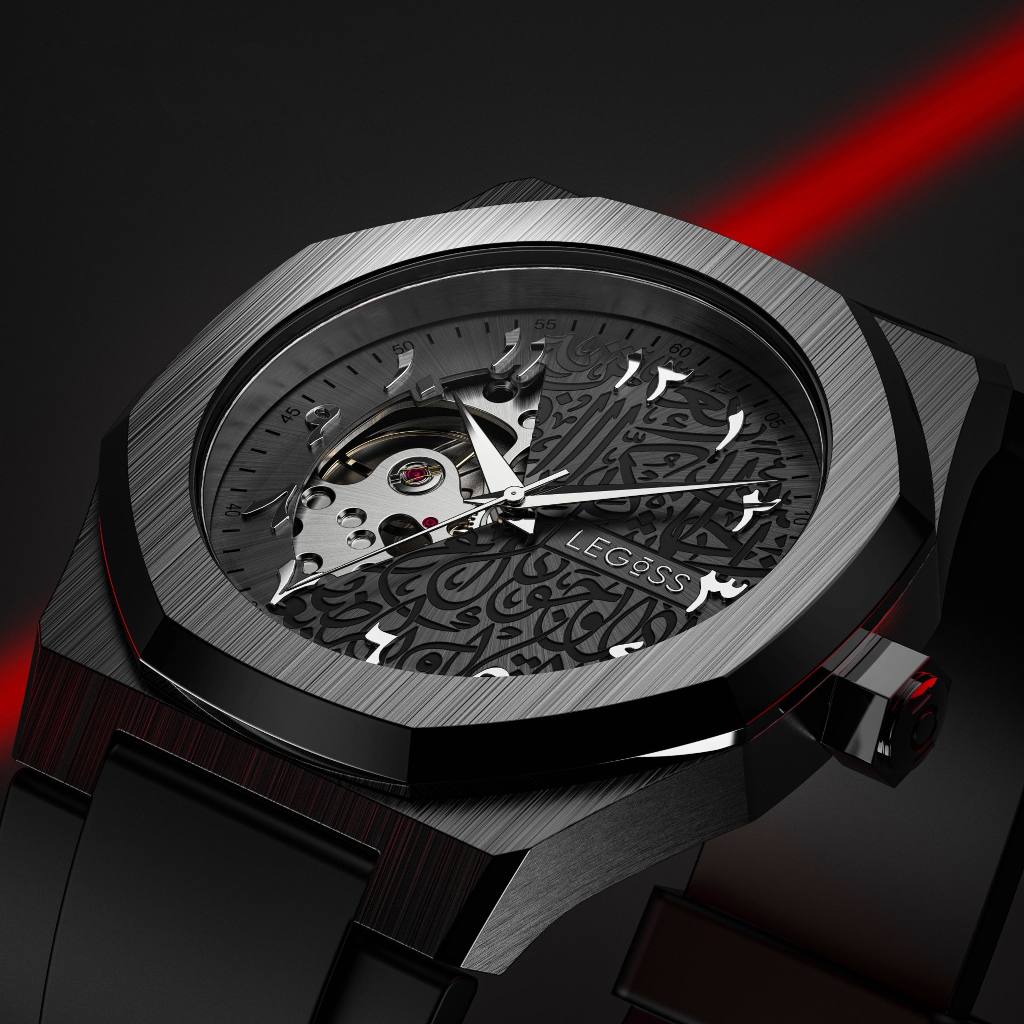 A fusion of contemporary design and timeless culture, this watch is more than a timekeeperâit is wearable art. Celebrate the beauty of Arabic script with a sophisticated, eye-catching accessory.